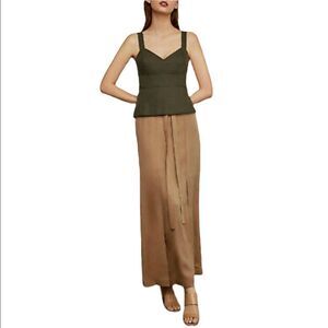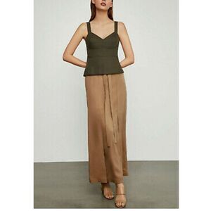BCBGMAXAZRIA Paper Bag Tie-Waist Midi Maxi Skirt Slits Chestnut XS