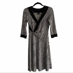 BCBGMAXAZRIA Printed Wrap Midi Dress Black White XS