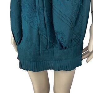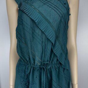 BCBGMAXAZRIA Runway Embroided Fairy Boho Frill Green Drawstring Waist Dress XXS