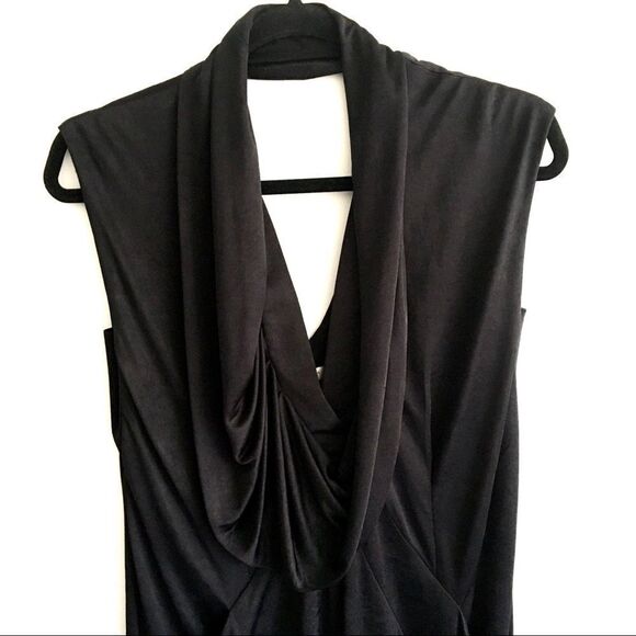 BCBGMAXAZRIA Runway Y2K Slinky Sleeveless Draped Mini Dress Black XS