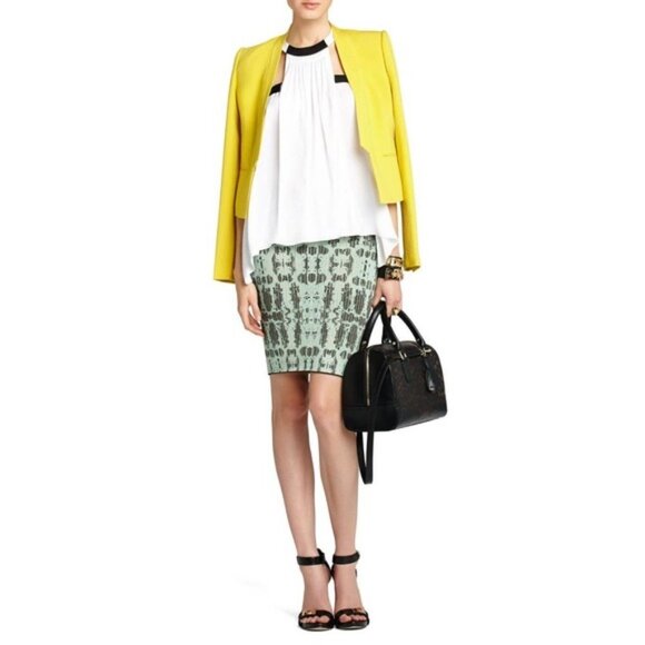 BCBGMAXAZRIA Scarlet Ink Block Bandage Skirt Sz XS Kelly Green