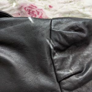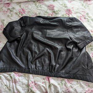 BCBGMAXAZRIA Short sleeve cinch waist real leather jacket