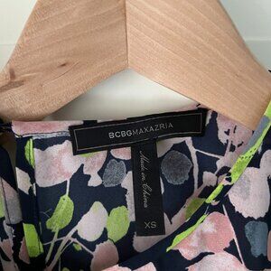 BCBGMAXAZRIA Skipper Cold Shoulder High Low Blouse - Dark Midnight Combo Print