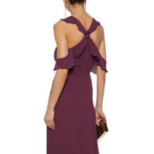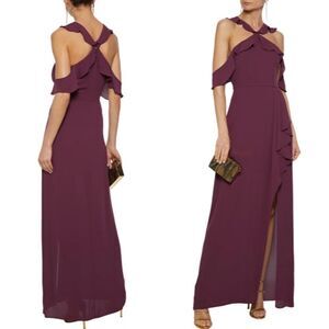 BCBGMAXAZRIA Sleeveless Cold-Shoulder Ruffle-Trimmed Crepe Gown Maxi Dress