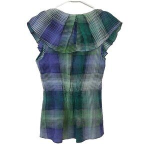 BCBGMAXAZRIA Sleeveless Top Blouse 100% Silk Size XXS Faux Wrap Green Purple