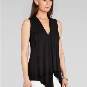 BCBGMAXAZRIA Sleeveless V-Neck High-Low Draped Asymmetrical Blouse S