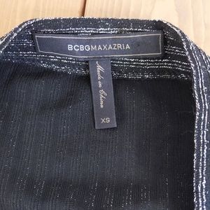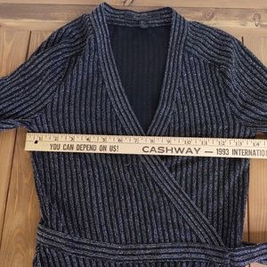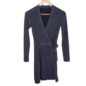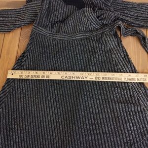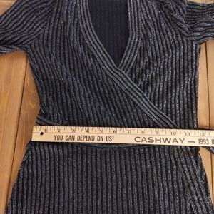 BCBGMAXAZRIA Women's Black Silver Metallic Sparkle Long Sleeve Mini Wrap Dress