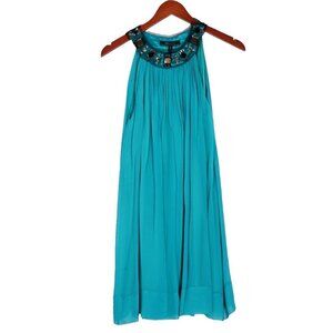 BCBGMAXAZRIA Women's US2 XS Green Dress Silk A-Line Beaded Neckline Mini $398