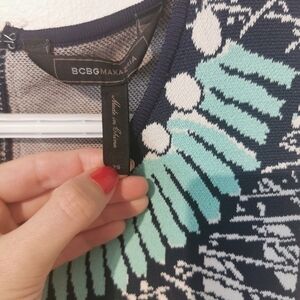 BCBGMAXAZRIA XS/S Wilma feather print exposed lower back