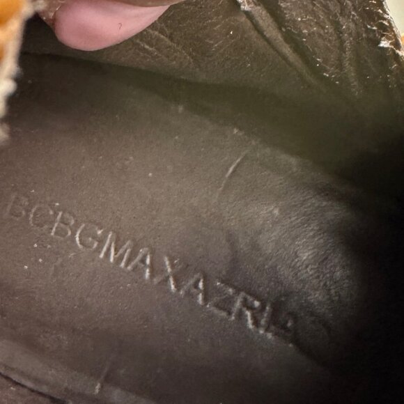 BCBGMAXAZRIA croc embossed hidden wedge knee high boots brown size 6
