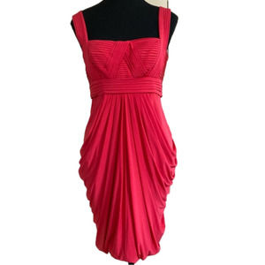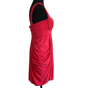 BCBGMAXAZRIA red draped bubble hem pleated bodice sleeveless mini dress.…