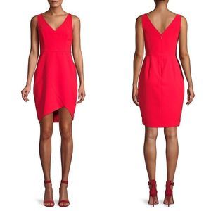 BCBGMAXAZRIA red sleeveless double-V sheath asymmetrical mini cocktail dress 12