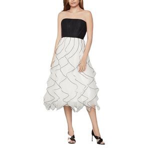 BCBGMAXAZRIA strapless tulle ruffled skirt midi dress off white combo black 6