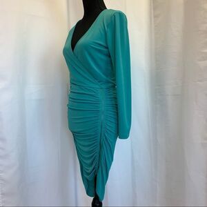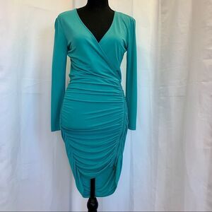 BCBGMAXAZRIA teal seagreen long sleeve wrap ruched mini dress Sz S