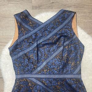 BCBG MAXAZRIA $268 Blue Lace Asymmetrical Sleeveless Dress Size 2 Vneck