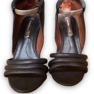 BCBGMAXAZRIA: Leather Ankle Strap Open Toed Stilettos