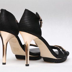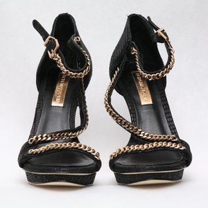 BCBGMaxAria Gold Chain Black Strappy Heels