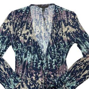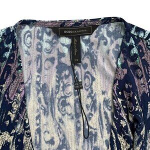 BCBGMaxAzria Adele Wrap Womens Dress Vintage Blue Combo XS