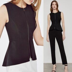 BCBGMaxAzria Black "Abrielle" Zip-Front Structured Peplum Sleeveless Top XXS