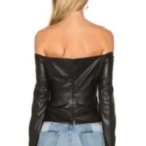 BCBGMaxAzria Black Faux Leather Judy Off The Shoulder Top