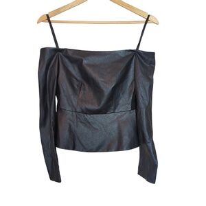 Black, faux leather off the shoulder peplum top with back zip closure.