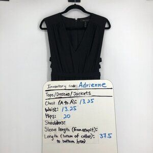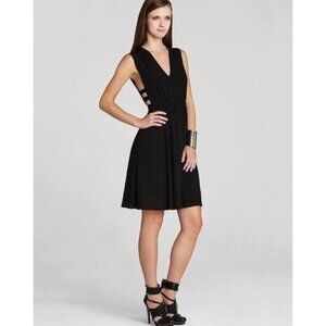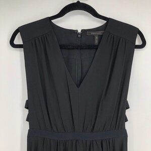 BCBGMaxAzria Black Gathered Waist Sleeveless V-neck Cutout Rachel Midi Dress XS