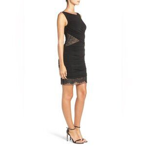 BCBGMaxAzria Black Renay Lace-Blocked Ruched Mini Bodycon Dress size 4