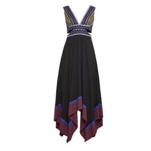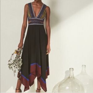 BCBGMaxAzria Boho Embroidered Handkerchief Midi Dress Black 0