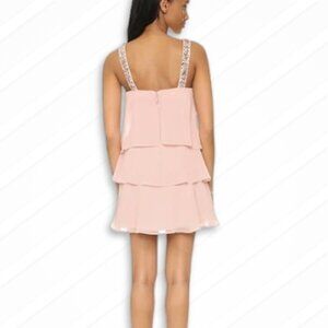 #BCBGMaxAzria #BCBGMaxArzriaDress #TieredDress #RufflesDesign #LightPinkDress #JewelStrap