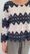 V neck back 3/4 scalloped sleeves and hem.