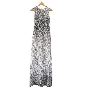 BCBGMaxAzria "Chloey" Black White Printed Full Length Gown Maxi Dress
