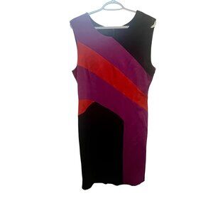 BCBGMaxAzria Colorblock Shift Dress Pink Purple Red Black Sleeveless Midi Sz L