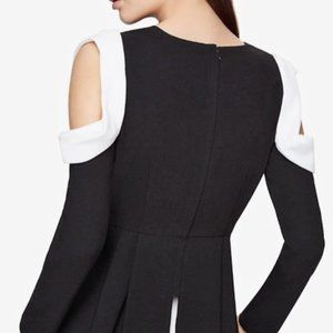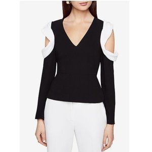 BCBG MaxAzria "Shannen" Black & White Structured Cold Shoulder Top