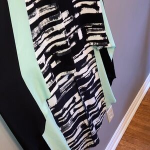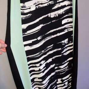 This stunning dress by BCBGMaxAzria features a chic high low hemline, offering a modern twist to a classic silhouette. The elegant black and white color palette adds a touch of sophistication, making it a versatile choice for both formal and casual occasions.