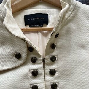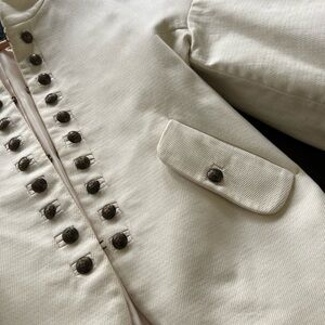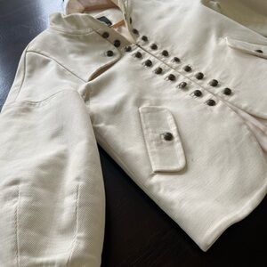 Elegant ivory jacket with distinctive button accents. Ideal for versatile styling.