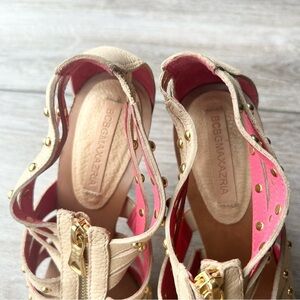 BCBGMaxAzria Ivory Leather Gladiator Studded Full Leather Open Toe Pumps