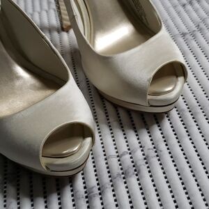 BCBGMaxAzria Ivory Satin Open Toe Pump Heels 7.5B