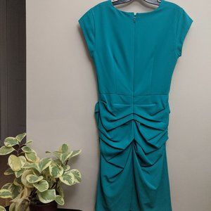Classy and comfortable cotton dress with neck detail and flattering ruching.