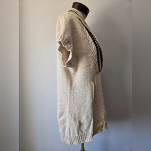 BCBGMaxAzria Lambswool And Cotton Short Sleeve Deep V Neck Tunic Sweater. XS