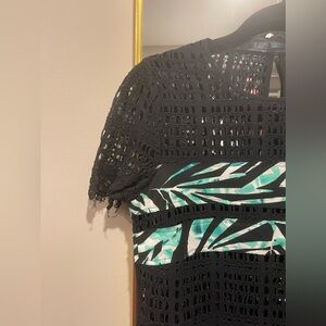 BCBGMaxAzria Layna Palms Eyelet Color-Block Blouse Top Size S-M