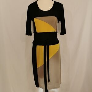 BCBGMaxAzria | Leticia yellow grey & black colour Block Dress - Sz M