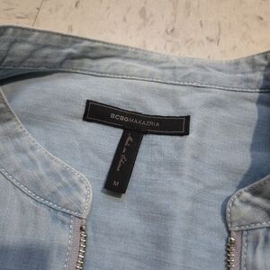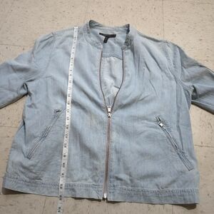 Stylish light blue jacket. Features front zipper and side pockets. Perfect for casual wear.