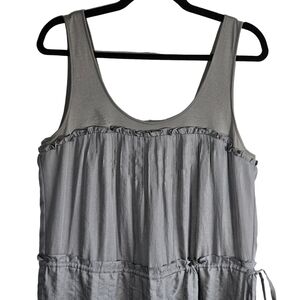 Chic light gray mini dress with ruffle accents. Sleeveless and stylish. Ideal for any occasion.