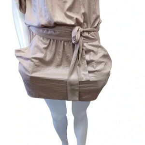 BCBGMaxAzria Margie Khaki Rouched Mini Tie Dress Size XS