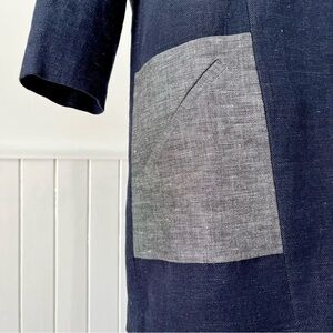 BCBGMaxAzria Navy Retro Tweed Linen Blend Mini Shift Dress