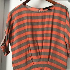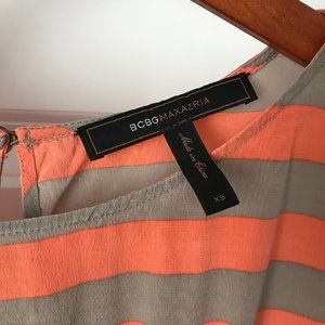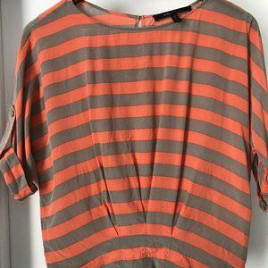 BCBGMaxAzria Orange and Grey Striped Silk Top 3/4 Sleeve (XS)