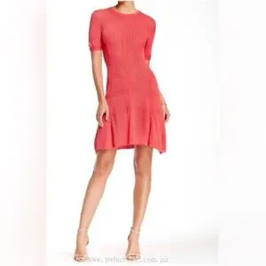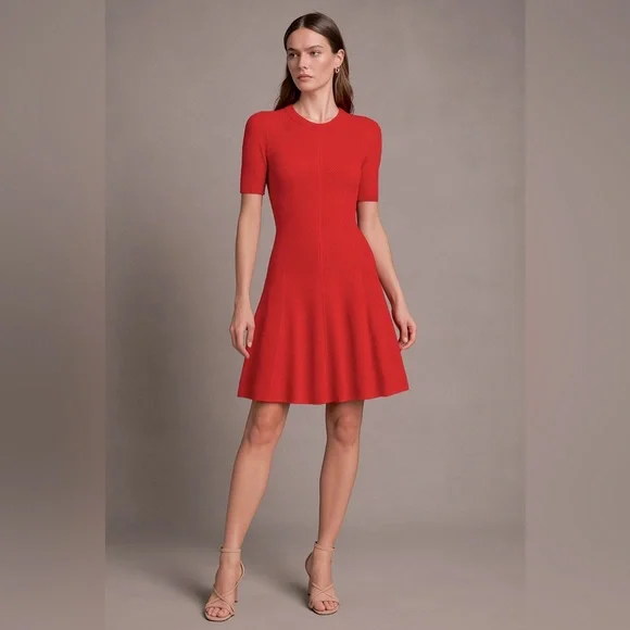 Elegant red mini dress. Short sleeves. Flared skirt. Perfect for any occasion.