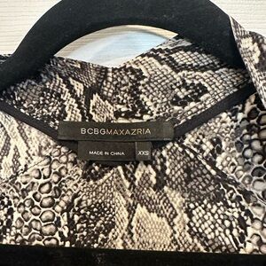 No polyester here! 100% silk BCBG snakeskin print dress. They just don’t make them like this anymore. Purchased in store years ago, but I’ve only worn it once. Style it with a belt for a more fitted look, or wear it loose for that effortless elegant style. A classic, timeless piece. Last picture is for inspo only. $109 OBO! Make an offer :)