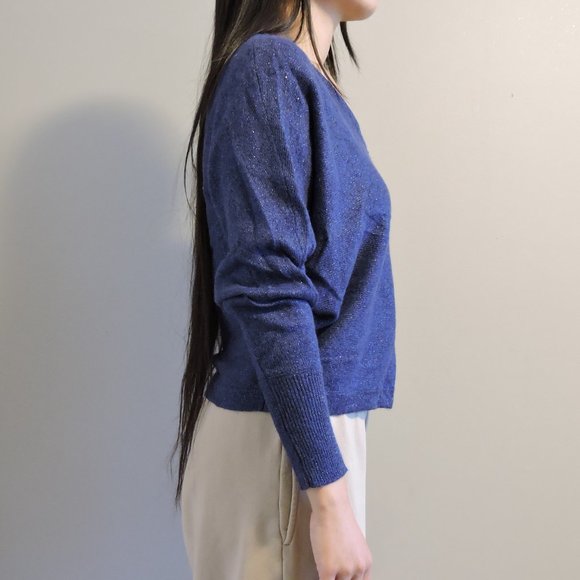 BCBGMaxAzria Soft Wool Cashmere Blue Sweater with Silver Metallic Sparkles