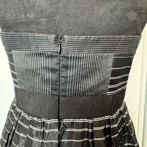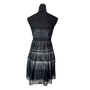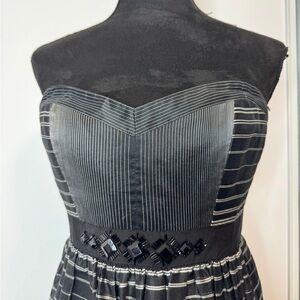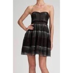 Keywords: BCBGMaxAzria mini dress, strapless organza dress, black cocktail dress
